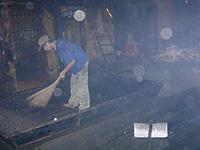 • Tất cả nhân công thợ rang gần như ở trần, quần đùi vì quá nóng và bụi, vì tránh các chất nhựa của cà phê và đường thắng ở các chảo lớn dính vào người